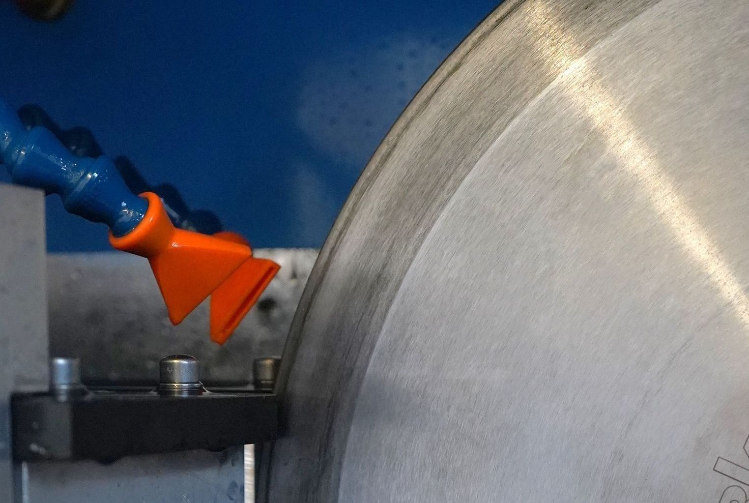 Die Wasserkühlung schützt das Sägeblatt und verlängert dadurch seine Lebensdauer. Darüber hinaus wird eine deutliche Reduzierung der Rauchemissionen erreicht.